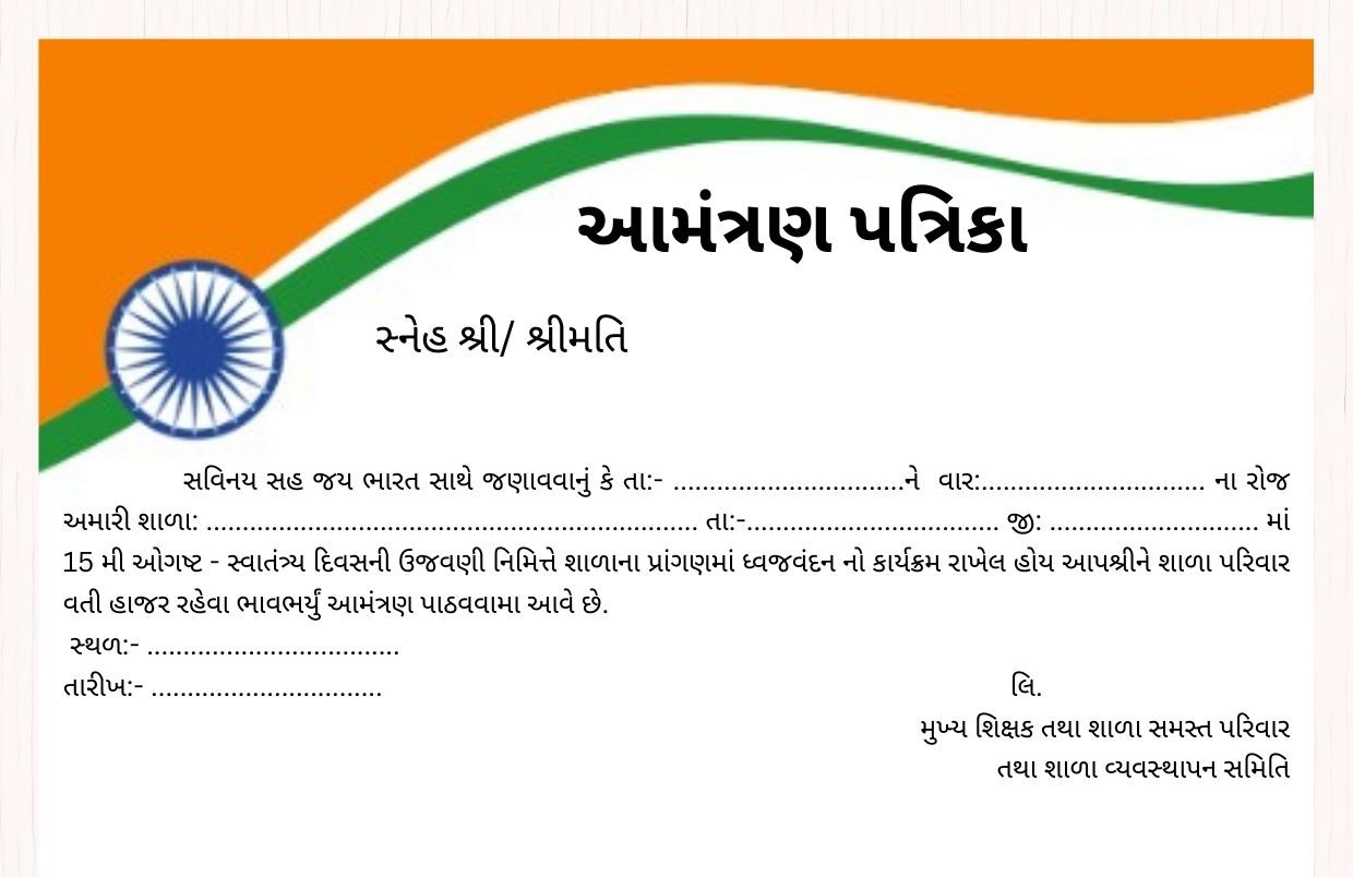 ૧૫ ઓગસ્ટ – 15 august independence dayઅને ૨૬ જાન્યુઆરી શાળાઓ માટે આમંત્રણ પત્રો